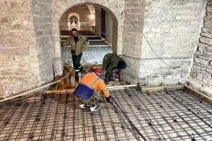 Параллельно специалисты занимаются подготовкой ниш для керамических вставок. В одном из помещений придела реставраторы демонтируют участок каменной кладки.