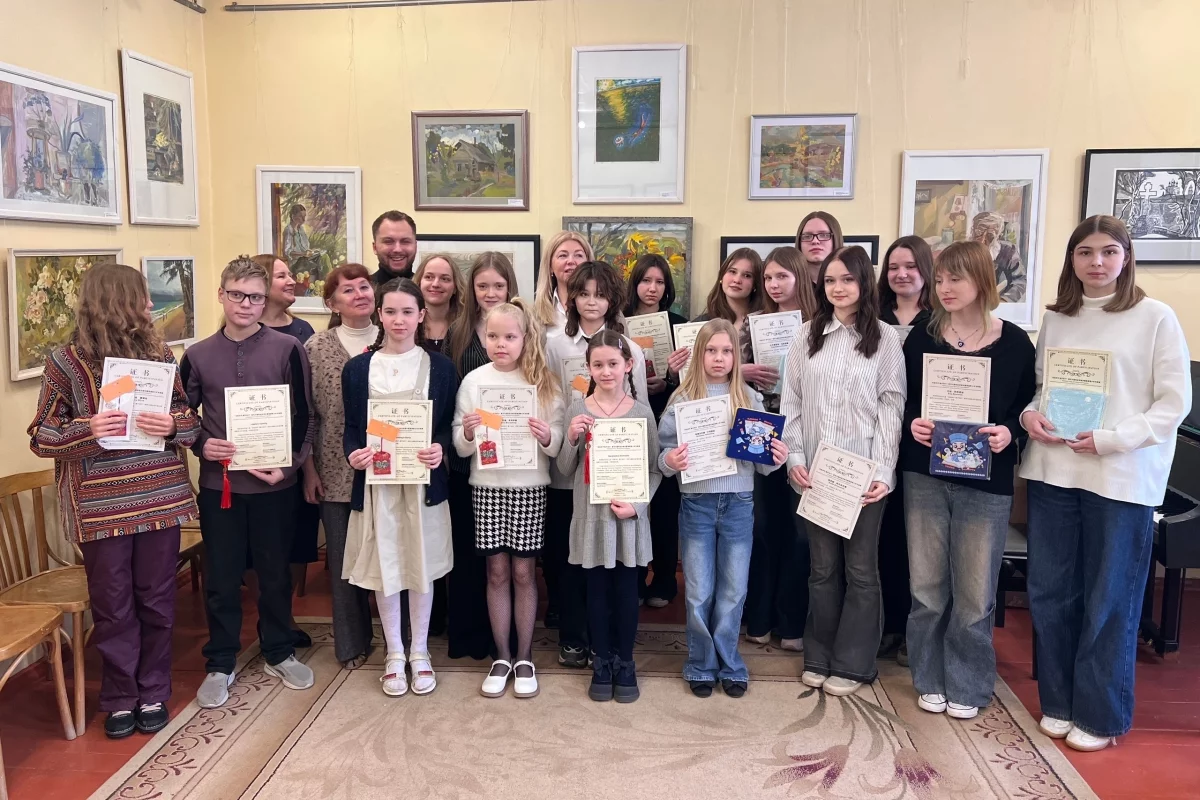 Выставка прошла в Детской школе искусств. Юных художников наградили памятными сувенирами и Благодарственными письмами из Китайской Народной Республики.