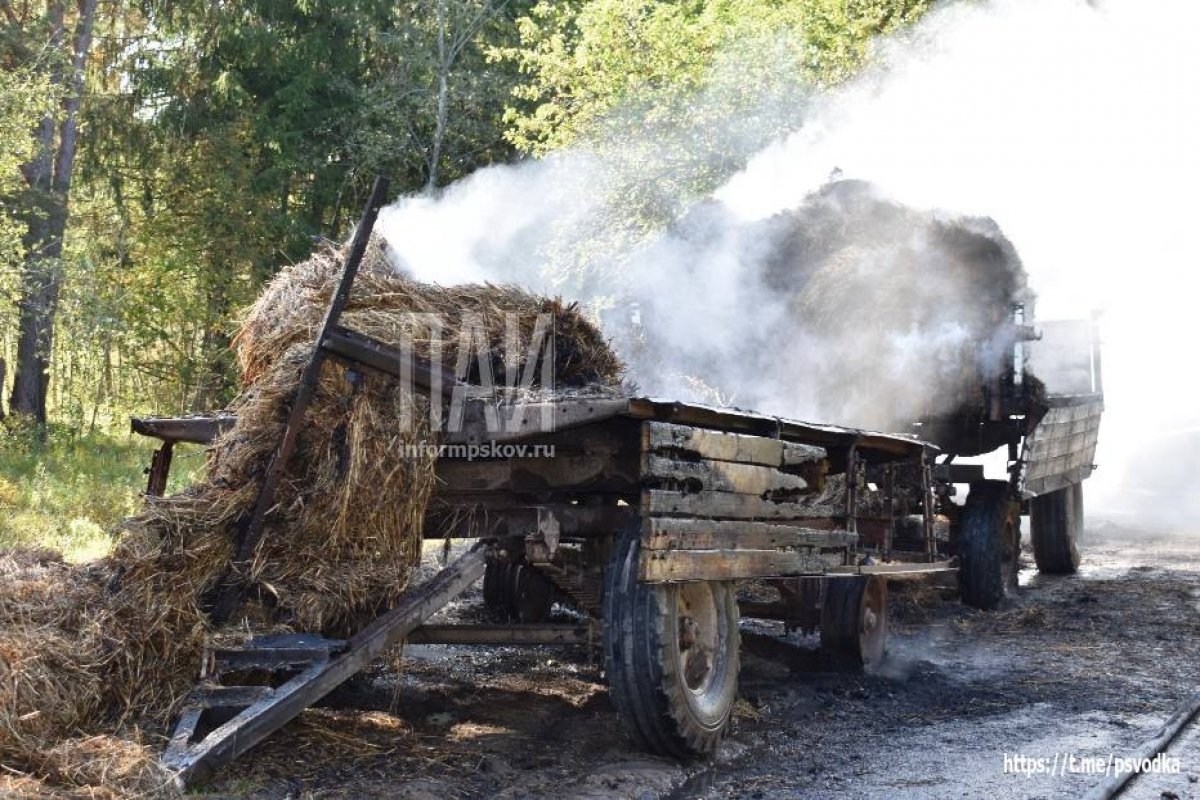 Прицеп с сеном загорелся на проезжей части в деревне Ловец Невельского района. Об этом сообщает Телеграм-канал «ПАИ Псковская сводка».