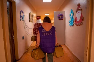 Добровольцы обошли палаты, сердечно поздравили участников СВО и вручили им подарки, передав с ними частичку домашнего тепла в это непростое время.