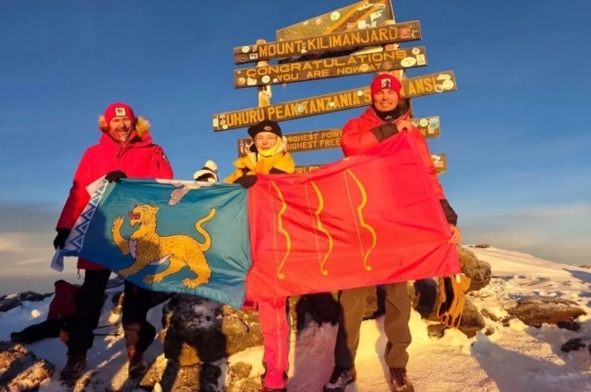 Флаг Псковской области водрузили на вершине горы Килиманджаро