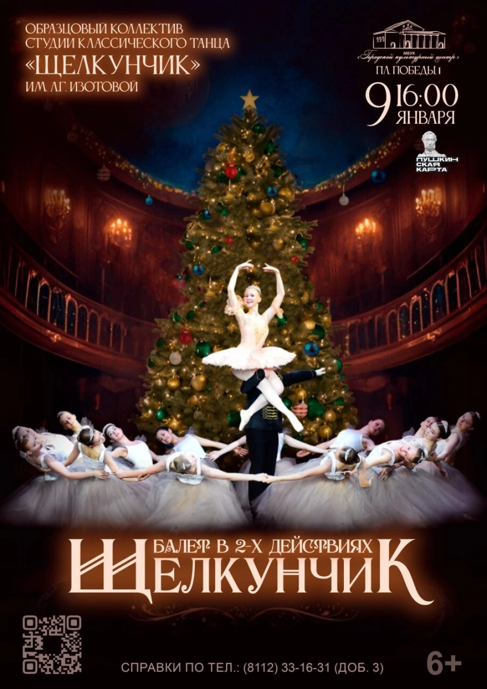 Балет «Щелкунчик». Время: 16:00. Балет «Щелкунчик» в исполнении участников Образцового коллектива студии классического танца «Щелкунчик» имени Л.Г.Изотовой. Этим спектаклем коллектив отмечает свой 50-летний юбилей.