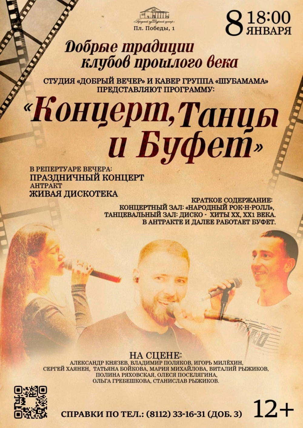 Праздничное мероприятие «Концерт, танцы и буфет». Время: 18:00.
